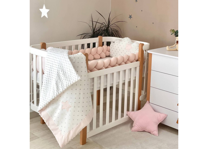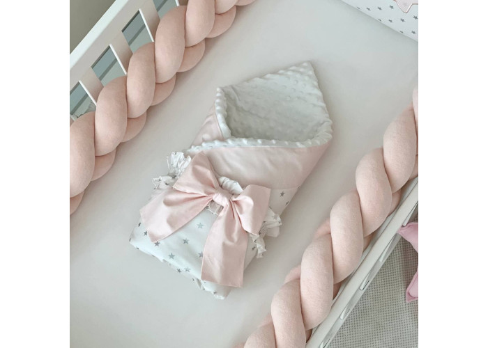 Комплект постільної білизни з 4 предметів (бортики, плед-конверт з ковдрою, бантик, простирадло).