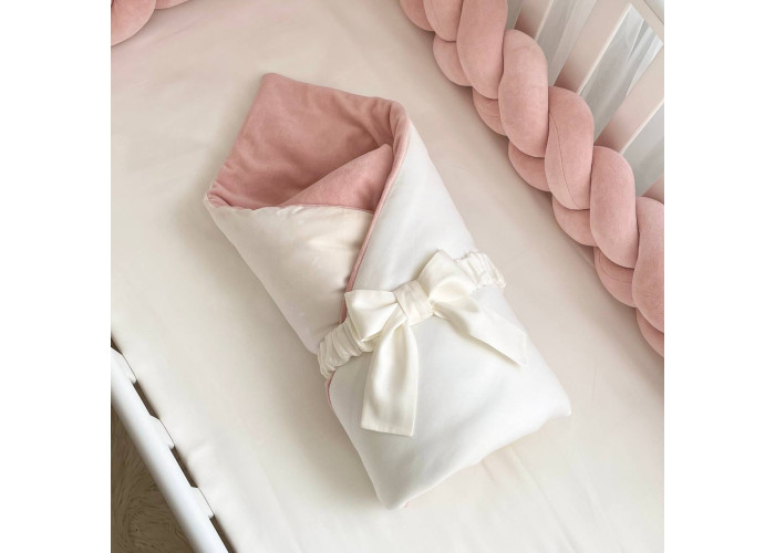 Комплект постільної білизни з 5 предметів (бортик-коса, анатомічна подушка, плед-конверт з ковдрою (сатин/велюр), бантик, простирадло).