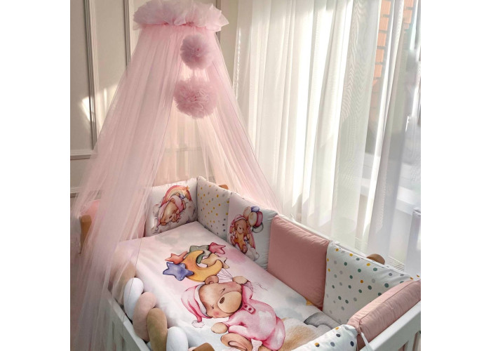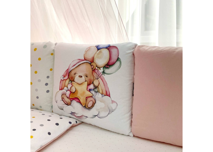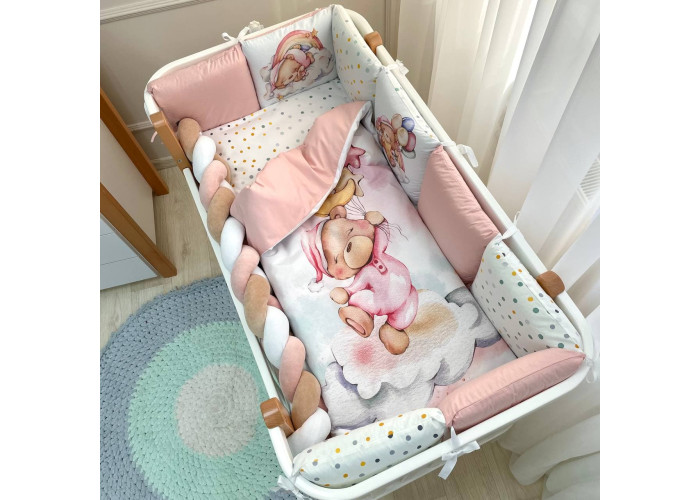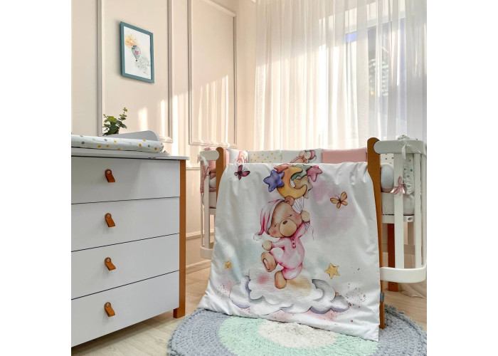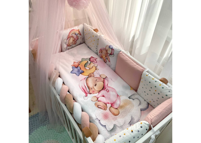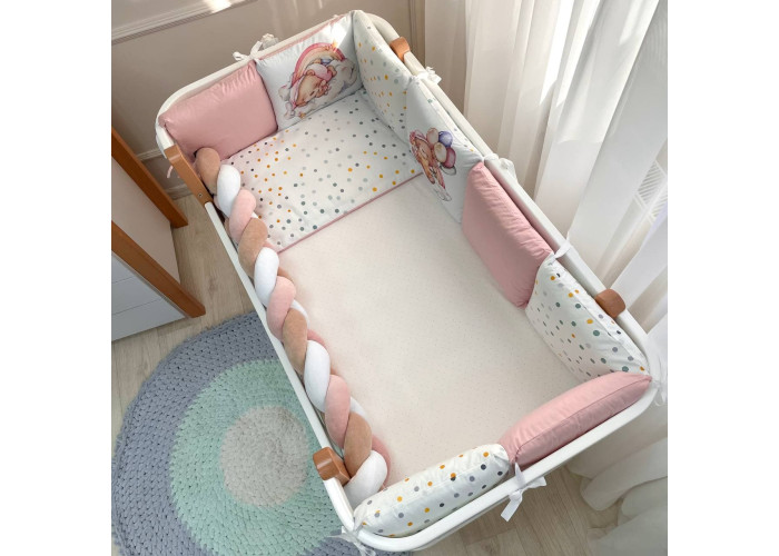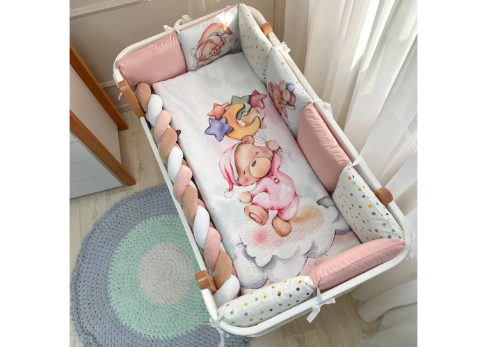 Комплект постільної білизни з 6 предметів (бортики, ковдра, подушка, підковдра, наволочка, простирадло), 100% бавовна.