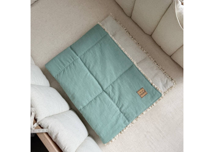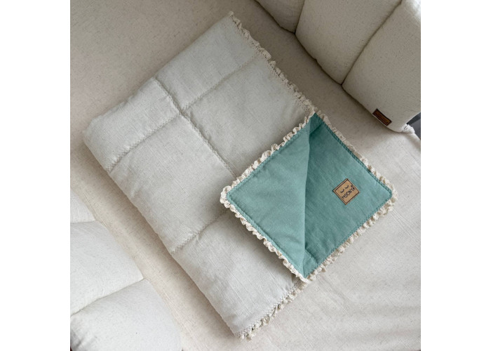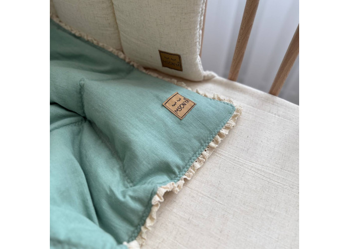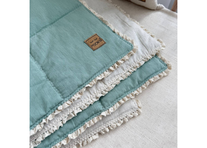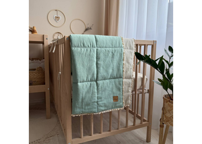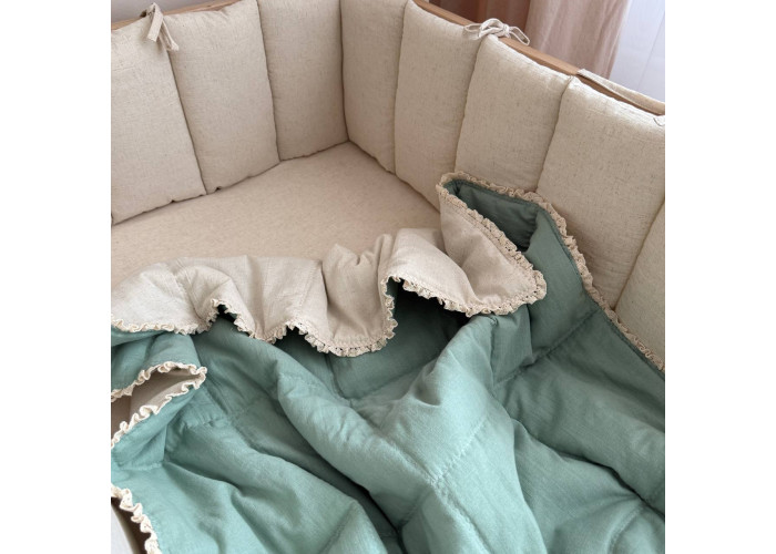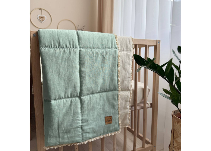 Дитячий двосторонній плед з мереживом, виготовлений із вареного льону, наповнювач - силіконізоване волокно.
