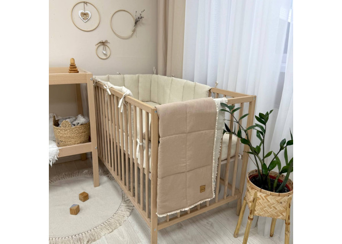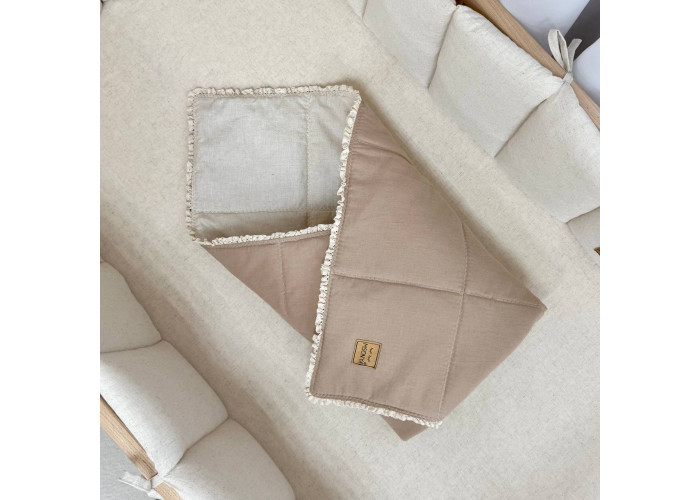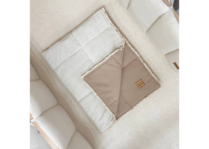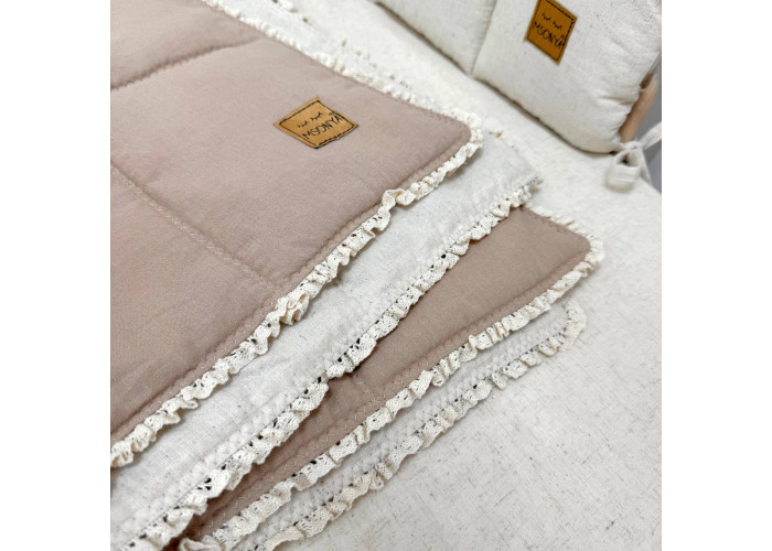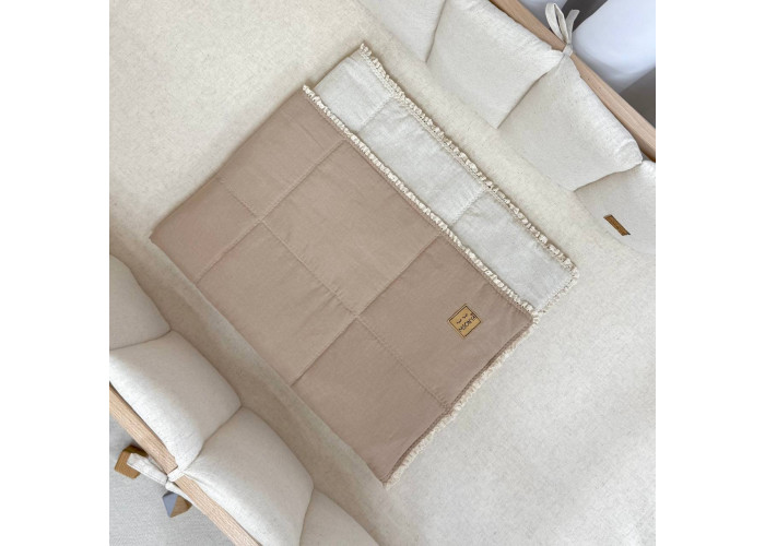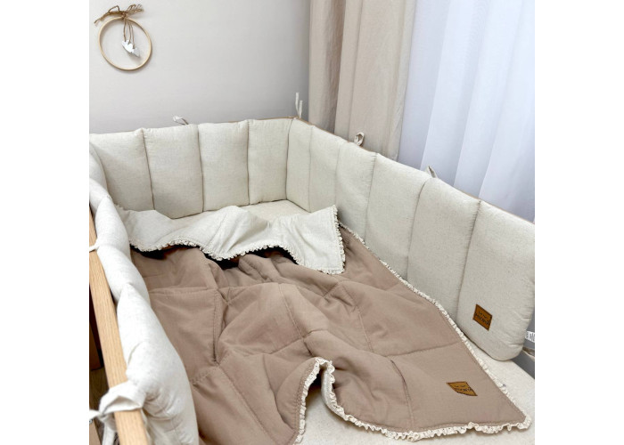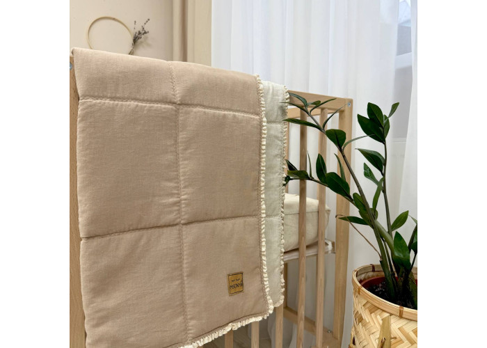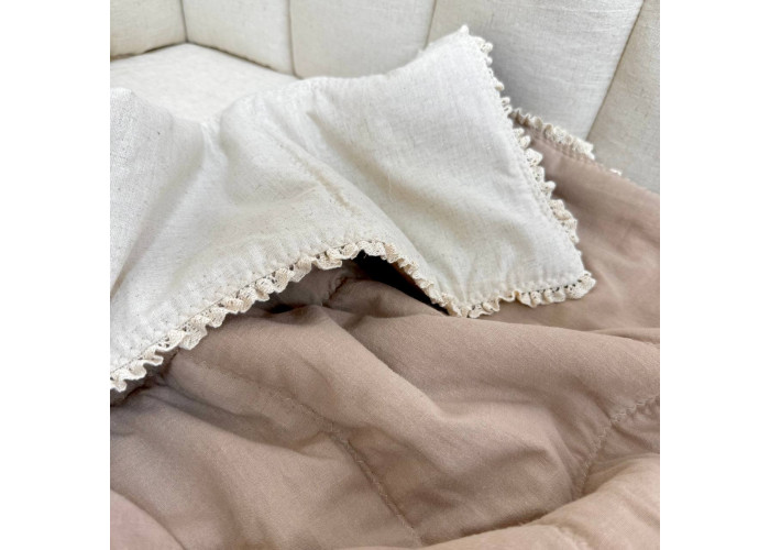 Дитячий двосторонній плед з мереживом, виготовлений із вареного льону, наповнювач - силіконізоване волокно.