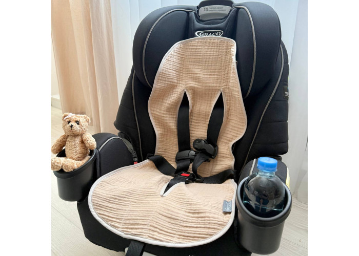 Вкладиш в автокрісло/візочок. Розмір 32х74 +/- 2см. Одна сторона виконана з 4-шарового мусліну, з їнша -з водонепроникної тканини.