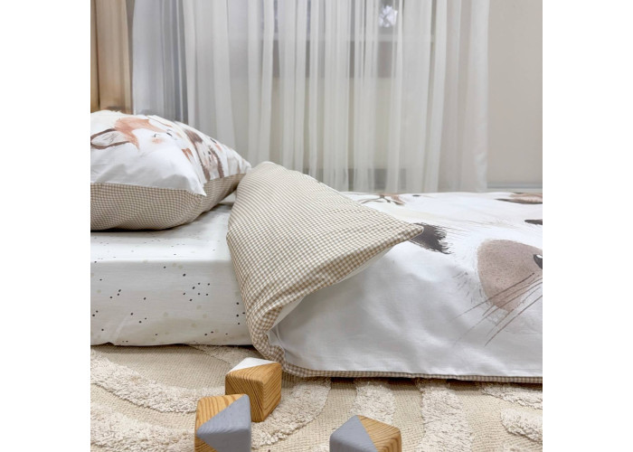 Комплект постільної білизни з 2 предметів: Підковдра на блискавці, 105 Х 140 +/- 2 см. Наволочка, 50 Х 70 +/- 2 см.