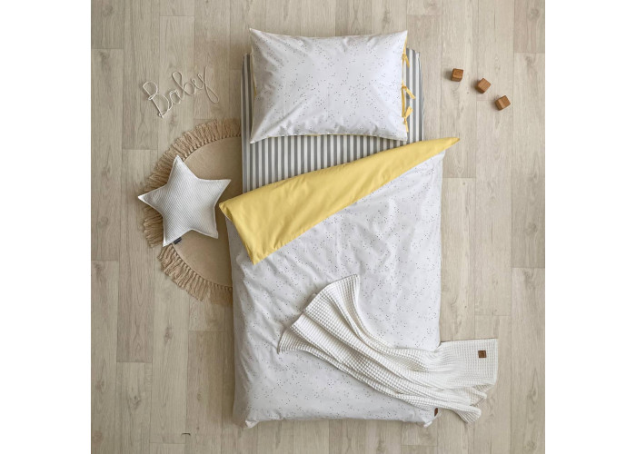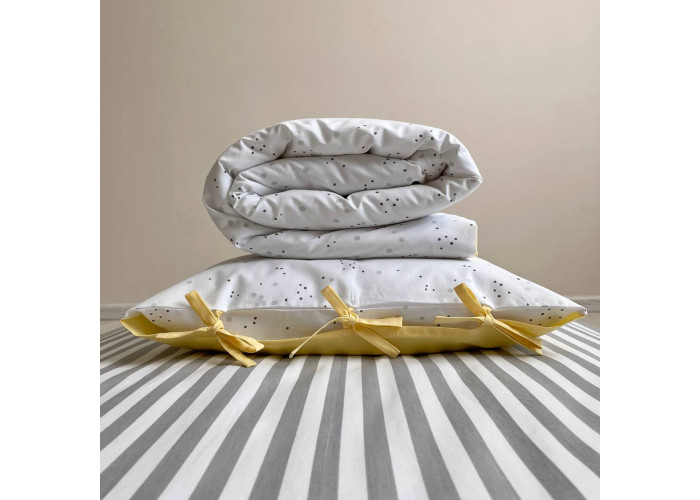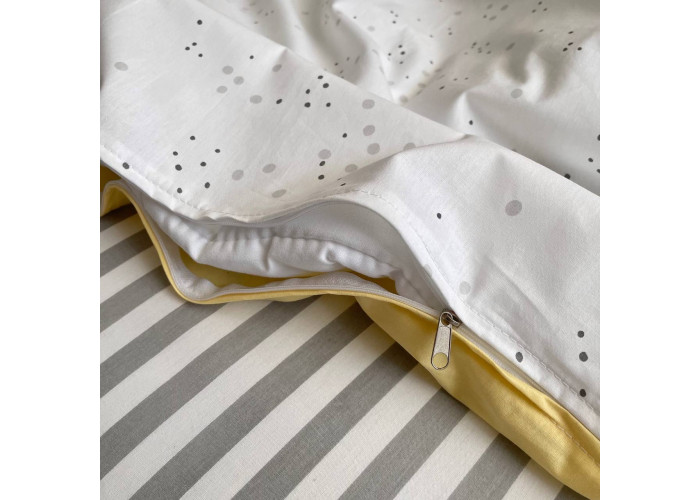 Комплект постільної білизни дитячий поплін Клякси сіро-чорні/жовтий