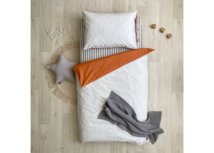 Комплект постільної білизни дитячий поплін Клякси сіро-чорні/теракот