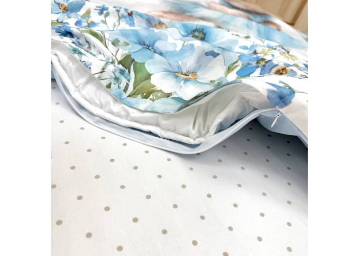 Комплект можна прати в автоматичній пральній машині при температурі не вище 40 градусів пральним порошком для кольорової білизни, відбілюючі засоби не застосовувати, віджимання 800 оборотів. Сушити комплект необхідно в розкладеному вигляді.