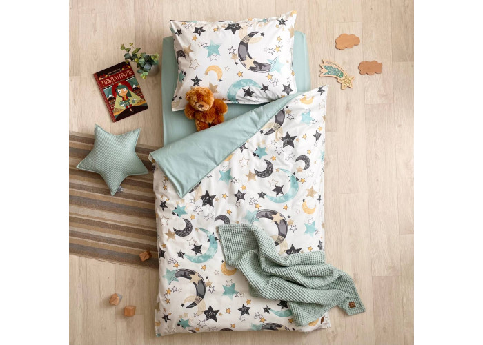 Комплект постільної білизни ясла поплін Арт-зірки мята