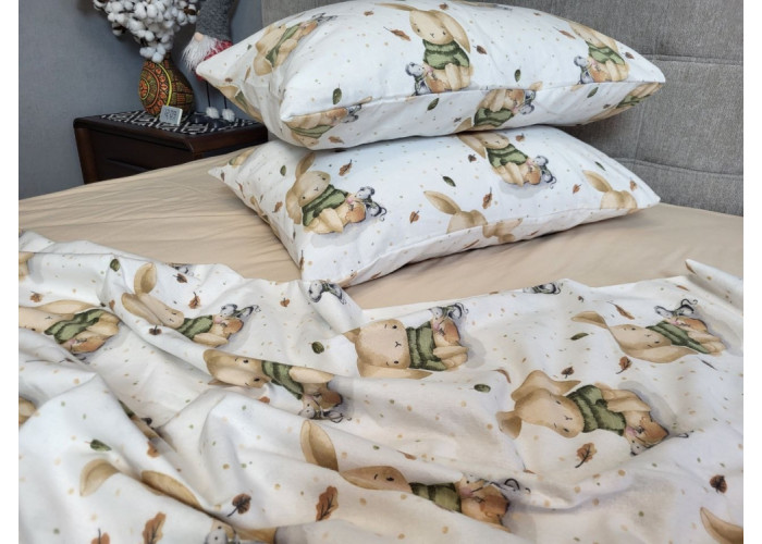 Купити комплект постільної білизни Вухастики/бежева пастель, Turkish flannel (Євро), ковдри та подушки біллербек, та получити найшвидшу консультацію можна по вайберу +380661920048