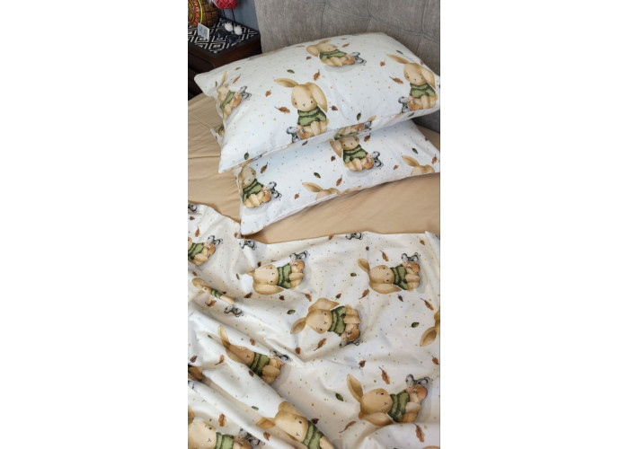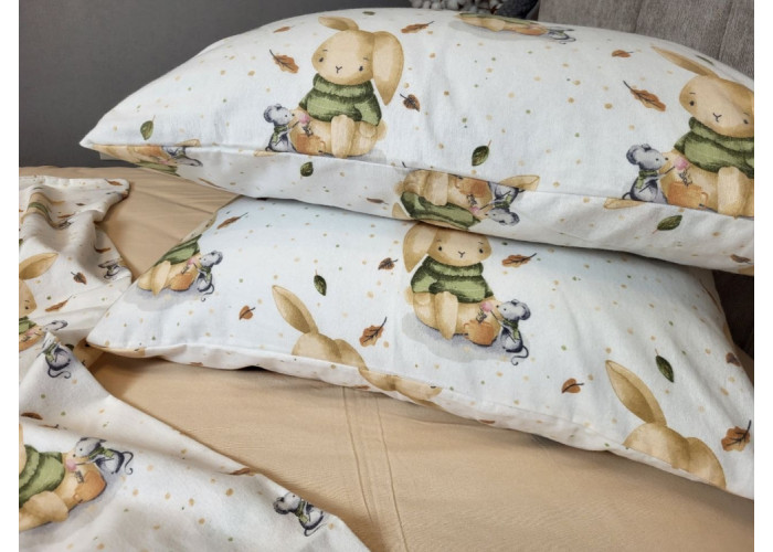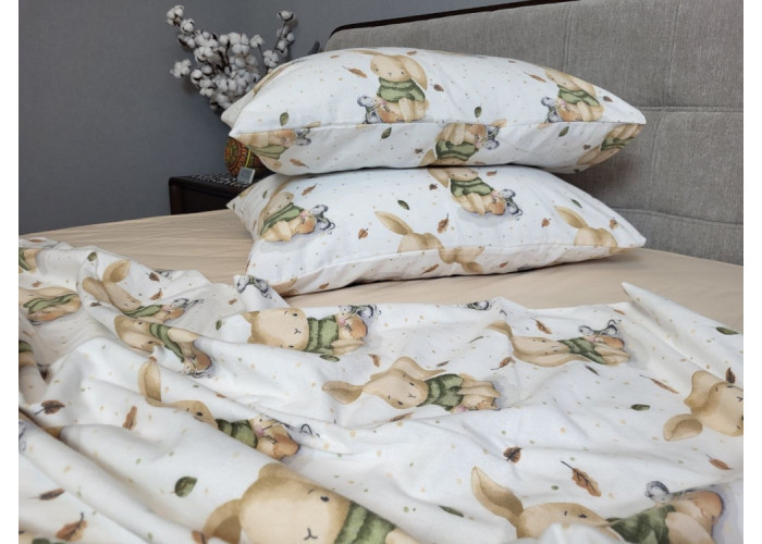 Купити комплект постільної білизни Вухастики/бежева пастель, Turkish flannel (Сімейний), ковдри та подушки біллербек, та получити найшвидшу консультацію можна по вайберу +380661920048