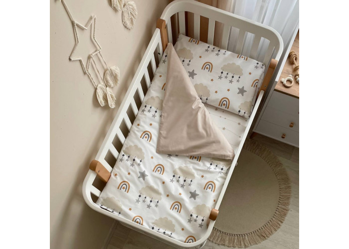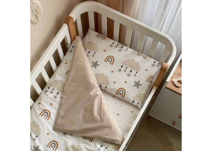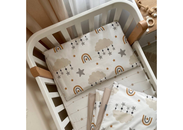 Змінна постіль Baby Mix Хмаринки із зірочками бежеві Маленька Соняунісексз малюнкомBaby Mixбежевий