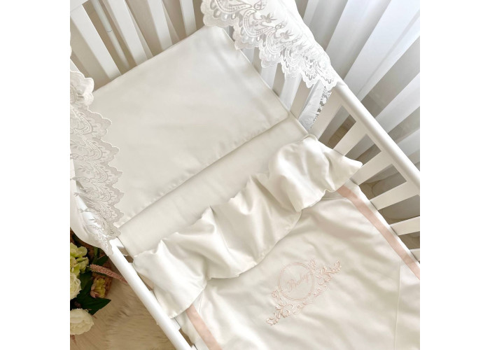 Змінна постіль Belissimo персик Маленька Сонядівчиназ вишивкоюBelissimoпудра