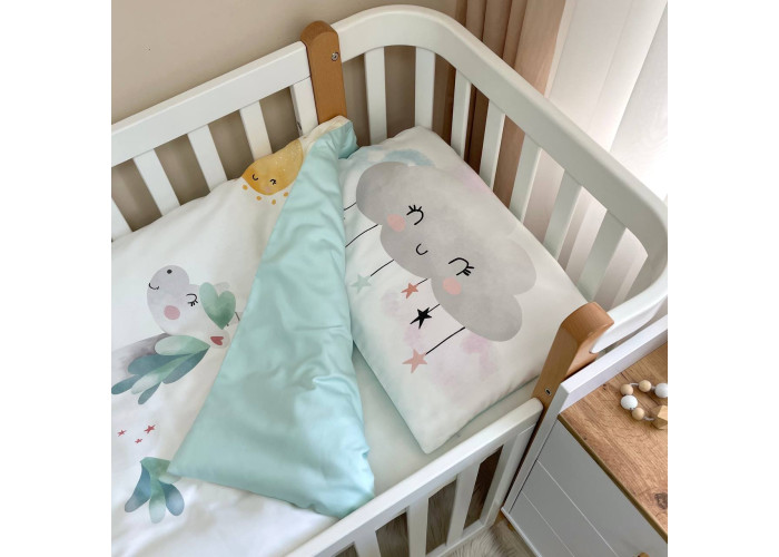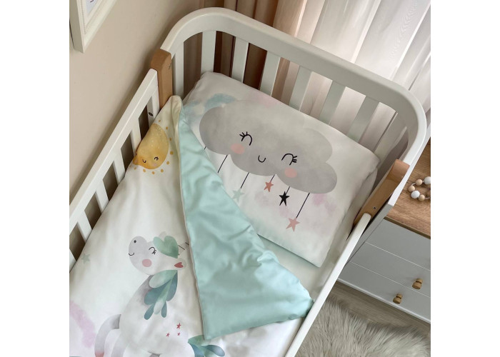 Комплект можна прати в автоматичній пральній машині при температурі не вище 40 градусів пральним порошком для кольорової білизни, засоби, що відбілюють, не застосовувати, віджим 800 оборотів.Сушити комплект необхідно в розкладеному вигляді. Прасувати рекомендується в середньому температурному режимі.