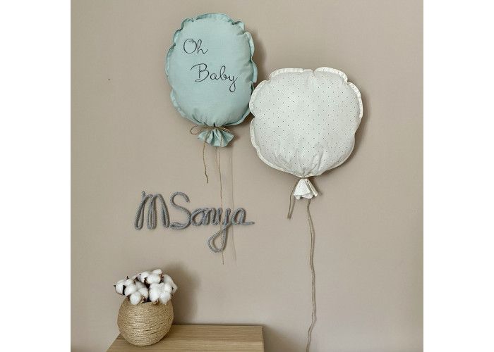 Бавовняна повітряна кулька - настінний декор для дитячої кімнати. Кульку можна використовувати як подушку-декор на ліжечко, а також як декор для фотосесій. Усередині гіпоалергенний наповнювач, який добре відновлює форму після прання. Для підвішування кулі необхідно прикріпити гачок або гвоздик. Прати рекомендується в режимах прання "ручне" або "делікатне", при температурі 30-40 С, щоб уникнути деформації тканини, акуратно полоскати, дбайливо віджимати. Миючі засоби, що містять відбілюючі речовини та хлор, можуть зіпсувати тканину, тому їх застосування та хімчистка заборонені!