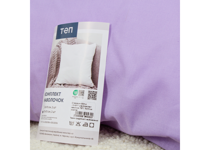 Комплект наволочок ТЕП сертифікований згідно зі стандартами якості Oeko-Tex Standart 100, що гарантує безпеку та екологічну чистоту продукту. Цей комплект не викликає алергії та може використовуватись для всіх членів родини.