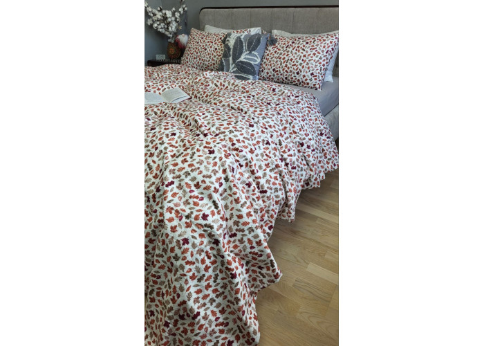 Купити комплект постільної білизни Багряна осінь/сірий мусон, Turkish flannel (Євро), ковдри та подушки біллербек, та получити найшвидшу консультацію можна по вайберу +380661920048