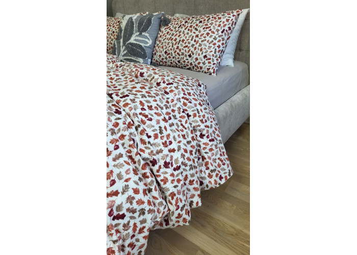 Купити комплект постільної білизни Багряна осінь/сірий мусон, Turkish flannel (Полут. на рез.), ковдри та подушки біллербек, та получити найшвидшу консультацію можна по вайберу +380661920048