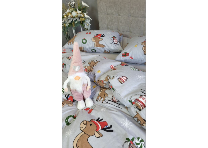 Комплект постільної білизни Помічники Санти/сірий, Turkish flannel