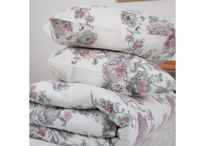 Виготовлений з натуральної бавовняної тканини - ранфорс. Ця тканина має терморегулюючі властивості, добре пропускає повітря і вбирає зайву вологу. Вона міцна, цупка, стійка до прання і прасування, не зминається і довго зберігає малюнок. Особливістю тканини ранфорс є її щільність – вища, ніж у бязі. Проте загалом ранфорс - тонша, м'яка і приємніша на дотик. Завдяки особливостям плетіння ця постільна білизна довго служить і чудово виглядає. У виробництві тканини використовуються безпечні та екологічно чисті барвники, що дозволяють зберегти яскравість і чіткість малюнка навіть після багатьох прань.