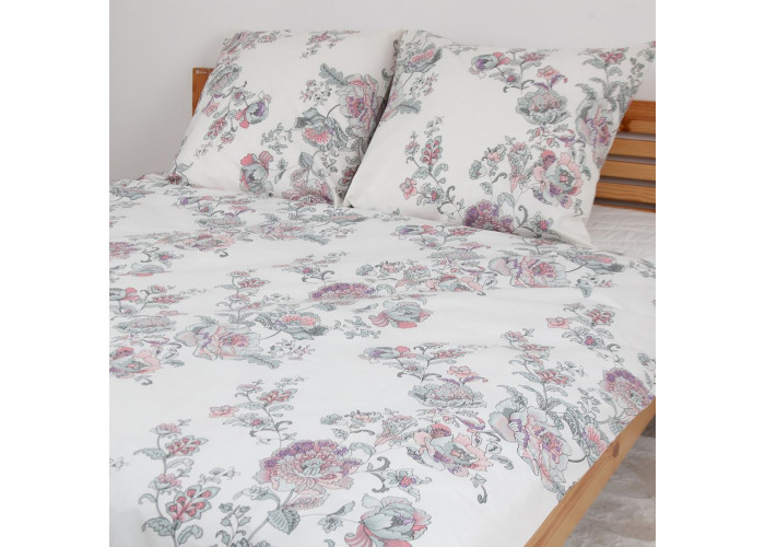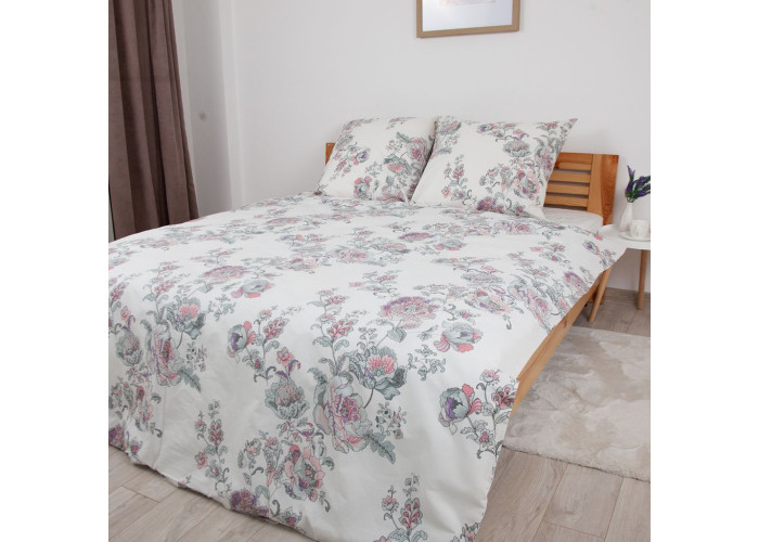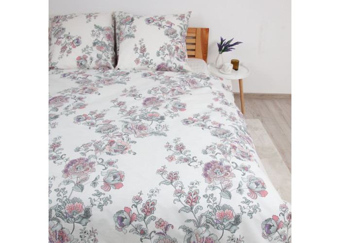 Виготовлений з натуральної бавовняної тканини - ранфорс. Ця тканина має терморегулюючі властивості, добре пропускає повітря і вбирає зайву вологу. Вона міцна, цупка, стійка до прання і прасування, не зминається і довго зберігає малюнок. Особливістю тканини ранфорс є її щільність – вища, ніж у бязі. Проте загалом ранфорс - тонша, м'яка і приємніша на дотик. Завдяки особливостям плетіння ця постільна білизна довго служить і чудово виглядає. У виробництві тканини використовуються безпечні та екологічно чисті барвники, що дозволяють зберегти яскравість і чіткість малюнка навіть після багатьох прань.