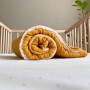 Догляд: плед необхідно прати в пральній машині або руками при температурі 30-40 градусів без додавання відбілюючих засобів і хлору. Відбілювачі можуть зруйнувати волокна або зробити їх вразливими. При машинному пранні рекомендується віджимати виріб в режимі не більше 600 оборотів. Сушити краще далеко від прямих сонячних променів і приладів опалення, акуратно розклавши на горизонтальній поверхні.