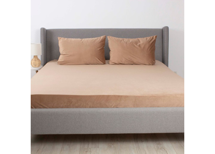 Простирадло на резинці “Velour” виготовлене з м’якого велюру, який створює приємні тактильні відчуття та додає інтер’єру розкішного вигляду.
