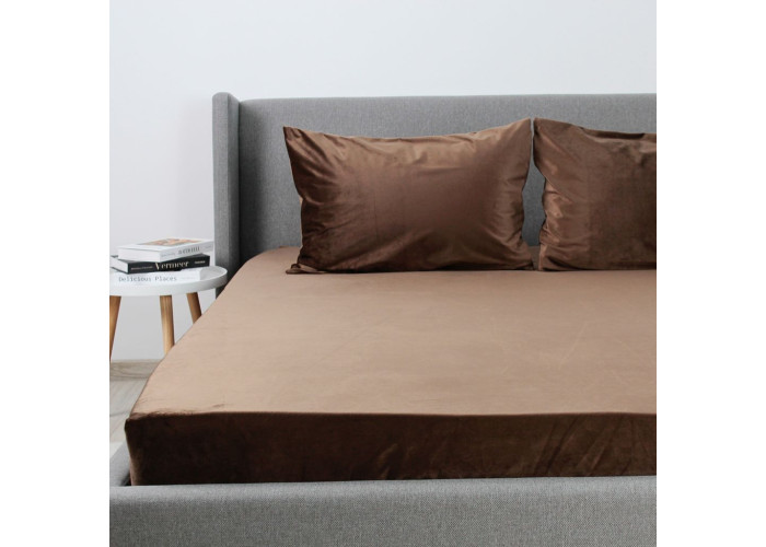 Простирадло на резинці “Velour” виготовлене з м’якого велюру, який створює приємні тактильні відчуття та додає інтер’єру розкішного вигляду.