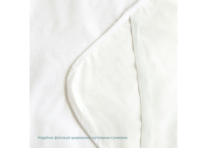 Верхнє покриття наматрасника - гіпоалергенна та приємна на дотик махрова тканина. Простирадло-протектор фіксується на матраці за допомогою широких кутових гумок. Таке кріплення дозволяє швидко і легко одягати й знімати виріб за потреби.