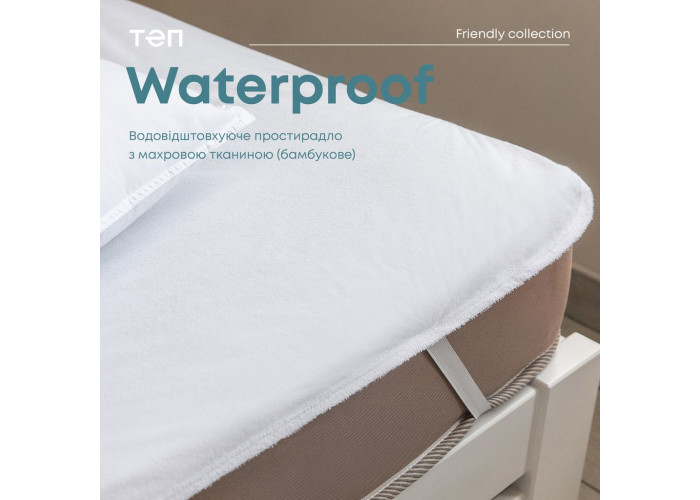 Вологонепроникне простирадло ТЕП "WATERPROOF" (БАМБУК) призначене для гігієни спального місця, збереження зовнішнього вигляду матраца і для захисту від рідких забруднювачів. Має "дихаючі" та вологовідштовхувальні властивості.