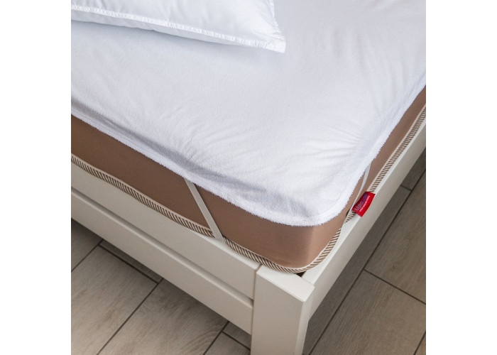 Верхнє покриття наматрасника - гіпоалергенна та приємна на дотик махрова тканина. Простирадло-протектор фіксується на матраці за допомогою широких кутових гумок. Таке кріплення дозволяє швидко і легко одягати й знімати виріб за потреби.