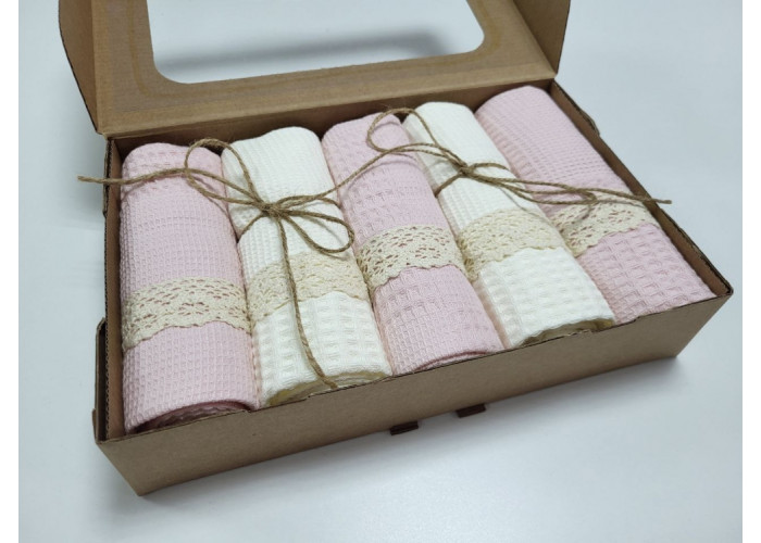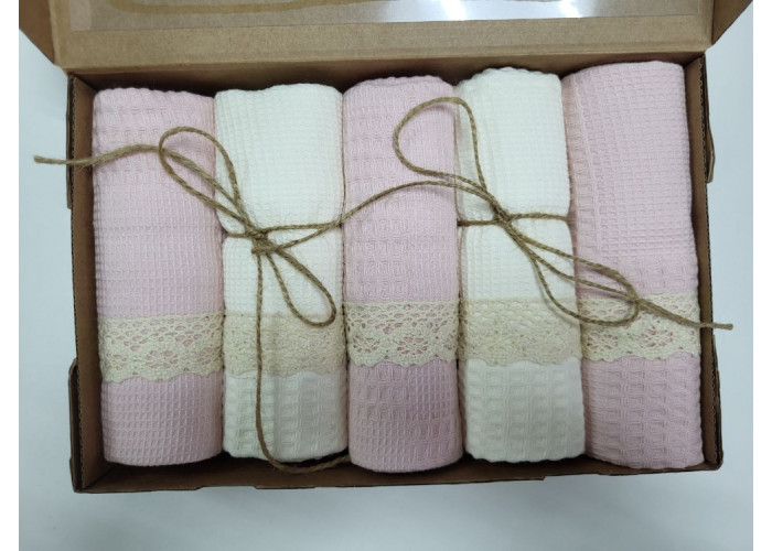 Універсальні рушники з петелькою, оздоблені мереживом.