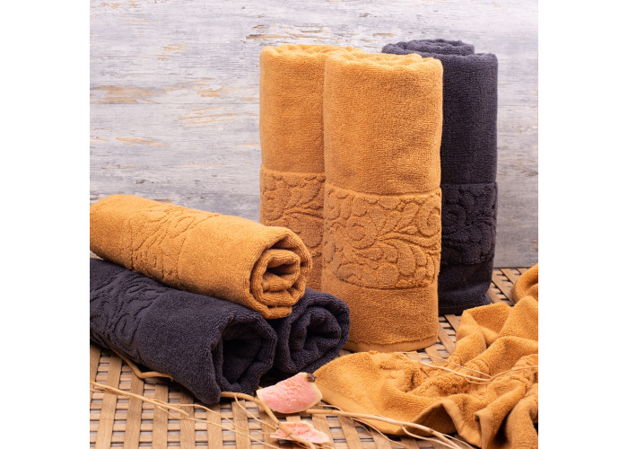 Полотенце махровое Аиша Provans горчичное из 100% хлопка (махра), украшено красивым бордюром, плотность 500 г/м2.