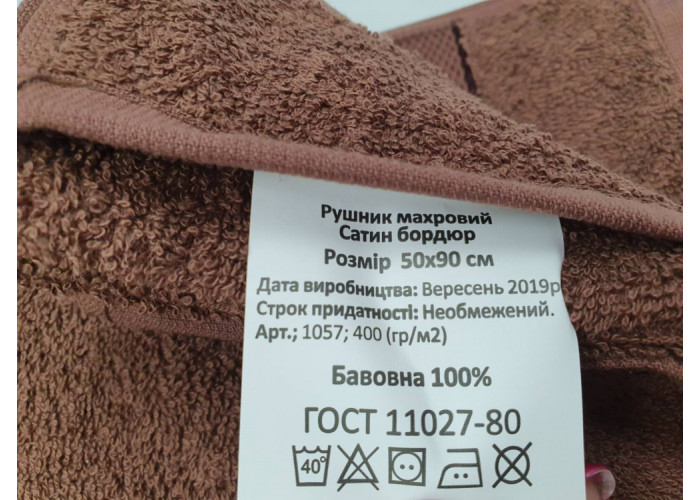 Рушник махровий Аїша зі 100% бавовни (махра), прикрашений красивим бордюром, щільність 400 г/м2.