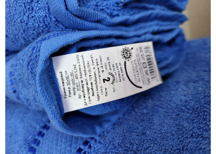 Рушник махровий зі 100% бавовни (махра), прикрашений красивим бордюром, щільність 400 г/м2.