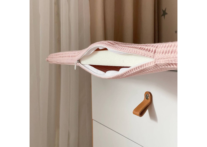 Пеленальний матрац із вафельної тканини - призначений для використання на твердій поверхні. Наповнювач матрацика – піна, пружний, сучасний, модифікований матеріал, який рівномірно розподіляє навантаження, завдяки чому малюк почувається затишно та комфортно. Чохол пеленального матрацика - знімний, його можна зняти для зручнішого прання.