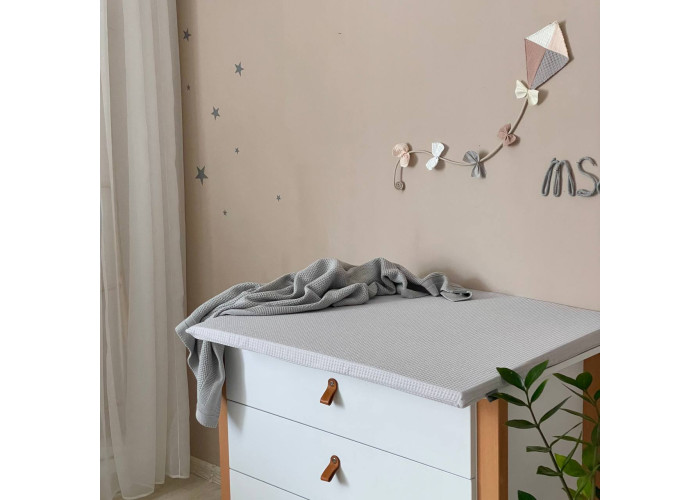 Пеленальний матрац із вафельної тканини - призначений для використання на твердій поверхні. Наповнювач матрацика – піна, пружний, сучасний, модифікований матеріал, який рівномірно розподіляє навантаження, завдяки чому малюк почувається затишно та комфортно. Чохол пеленального матрацика - знімний, його можна зняти для зручнішого прання.