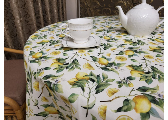 Чудова бавовняна скатертина з водо, жиро та грязе-відштовхувальним просоченням - відмінний варіант, як для щоденного використання, так і для сімейного свята. Спеціалізоване просочення - це додаткова обробка тканини, яка не дає рідини, жиру та іншим забрудненням вбиратися у волокна, чим значно полегшує догляд за скатертиною та дозволяє використовувати її без прання тривалий час. Щоб скатертина залишалася чистою та охайною її необов'язково відправляти в прання відразу ж після використання. Ви можете щіточкою зібрати крихти і протерти забруднення вологою губкою - все, скатертина буде знову готова до використання. Тефлонові скатертини від Комфорт-текстиль збережуть затишок у Вашому будинку, а яскраві та барвисті малюнки чудово впишуться в інтер'єр Вашої кухні!