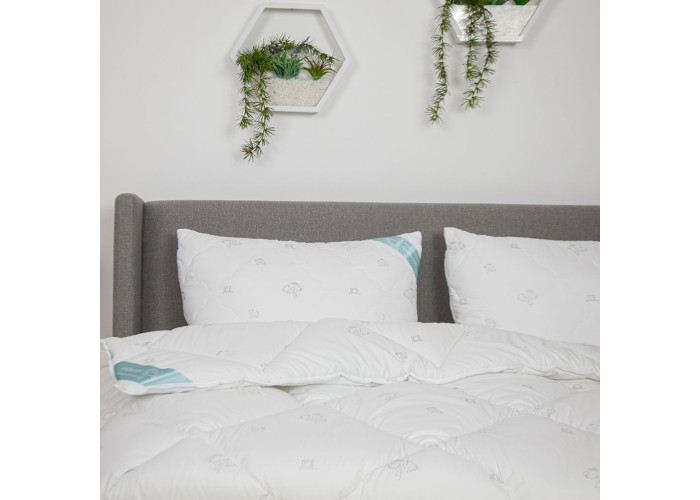 Тканина зовнішнього стебнованого чохла – мікрофібра Membrana, високотехнологічна сучасна тканина. З внутрішнього боку ця тканина оброблена ультразвуковим коландером, що створює ефект мембрани. Особливість мембрани – пропускати всередину виробу трохи більше повітря, ніж випускати назовні. Так виникає повітряний ефект, який робить ковдри та подушки більш об'ємними, легкими, ніжними.
