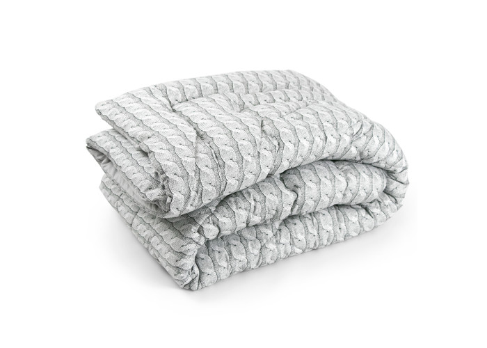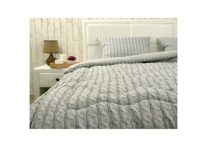 Дизайн виробу, незвичайний, один бік з нанесенням малюнка під в'язку техніка кіска, додасть родзинку в інтер'єр вашої спальні, таку ковдру не хочеться ховати в підковдру, але щоб доглядати за чистотою ковдри було легше, ми розробили постільні комплекти Grey Braid з таким же малюнком. Доповнити ковдру також можна подушками для сну, покривалом і декоративними подушками колекції Grey Braid. Принт виконаний у сірих відтінках, з імітацією в'язаного полотна дуже затишний.