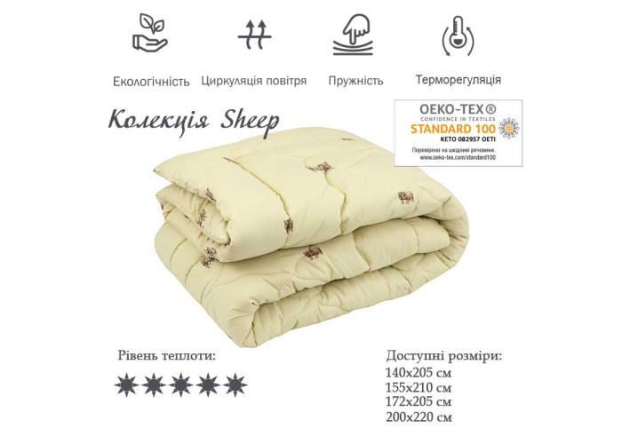 • Підвищені теплоізоляційні властивості. Овеча ковдра дуже тепла, під нею комфортно спати навіть коли ще не включили опалення в квартирі.