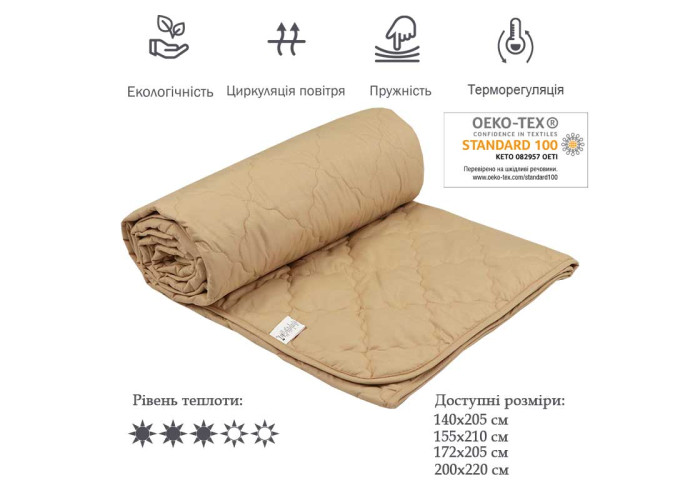 Ковдра 172х205 вовняна "Комфорт" бежева