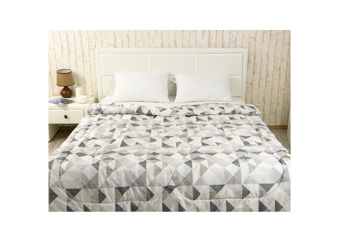 Демісезонна, стебнована ковдра Абстракція виконана в дизайнерському колірному рішенні. З одного боку геометричний малюнок з іншого - однотонна тканина. Спокійні і стримані кольори ковдри, будуть гармонійно виглядати в будь-якому інтер'єрі спальні. Також така ковдра буде гарним подарунком для ваших близьких.