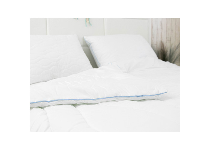 Ідеальна для міжсезоння Ця демісезонна ковдра чудово підходить для прохолодної погоди. Вишуканий кант небесного кольору по краях додає естетики та завершеності дизайну.