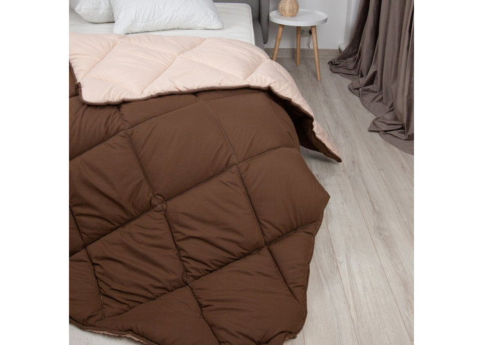 Зовнішня тканина - мікрофібра в дизайні, що добре пропускає повітря і відводить вологу. Наповнювач ковдри - антиалергійне полієфірне волокно DoubleAir, об’ємне та легке, добре утримує тепло. Завдяки технології рівномірного розподілу наповнювача та фігурній вистебці, наповнювач не збивається, а ковдра довго служить.