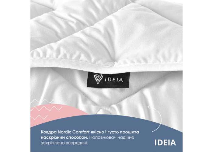 Всесезонна ковдра Nordic Comfort - оригінальна розробка української фабрики «Текстиль - 2000» і торгової марки IDEIA. Пошита з сучасних матеріалів, що дихають. Буде легкою (це супер сила сучасних наповнювачів) і теплою. Така ковдра не відноситься до особливо теплих, але водночас комфортна при нормальному опаленні в оселі. Вона буде підтримувати оптимальну температуру тіла людини. Є практичною у догляді. Її можна прати в сучасних пральних машинках. Ковдра м’яка, добре входить у пральну машину, не обважнює барабан.