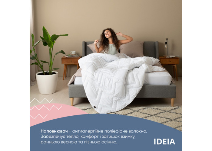 Всесезонна ковдра Nordic Comfort - оригінальна розробка української фабрики «Текстиль - 2000» і торгової марки IDEIA. Пошита з сучасних матеріалів, що дихають. Буде легкою (це супер сила сучасних наповнювачів) і теплою. Така ковдра не відноситься до особливо теплих, але водночас комфортна при нормальному опаленні в оселі. Вона буде підтримувати оптимальну температуру тіла людини. Є практичною у догляді. Її можна прати в сучасних пральних машинках. Ковдра м’яка, добре входить у пральну машину, не обважнює барабан.