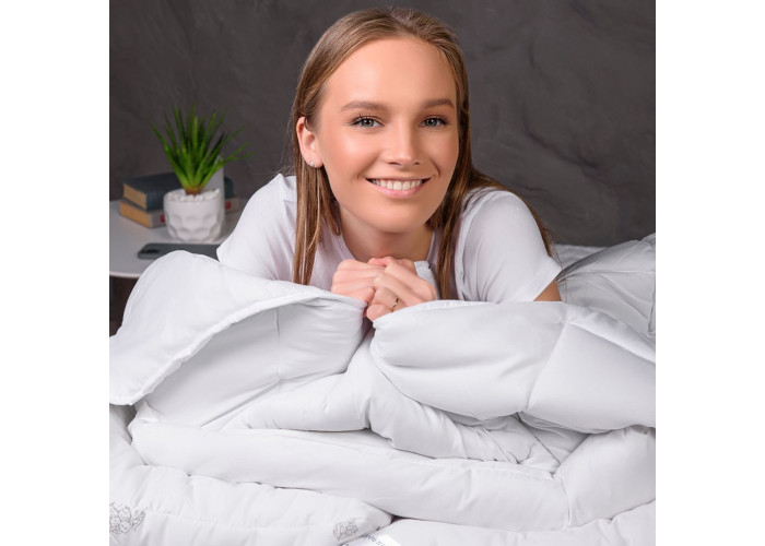 6 причин полюбити цю ковдру: 1. Не викликає алергії - тому користуватися можуть усі;2. Завжди доступна ціна;3. "Дихаюча" тканина забезпечує відчуття свіжості вночі;4. Наповнювач рівномірно розподілений по всій ковдрі та не збивається - достатньо легко потрусити ковдру для відновлення об'єму;5. Простота у догляді: можна прати в пральній машині та сушити в сушильній машині;6. Виготовляється в Україні з турботою про здоровий сон і дотриманням європейських стандартів якості.
