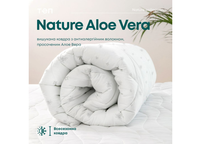 Вишукана ковдра з антиалергенним волокном, просоченим екстрактом Aloe Vera.