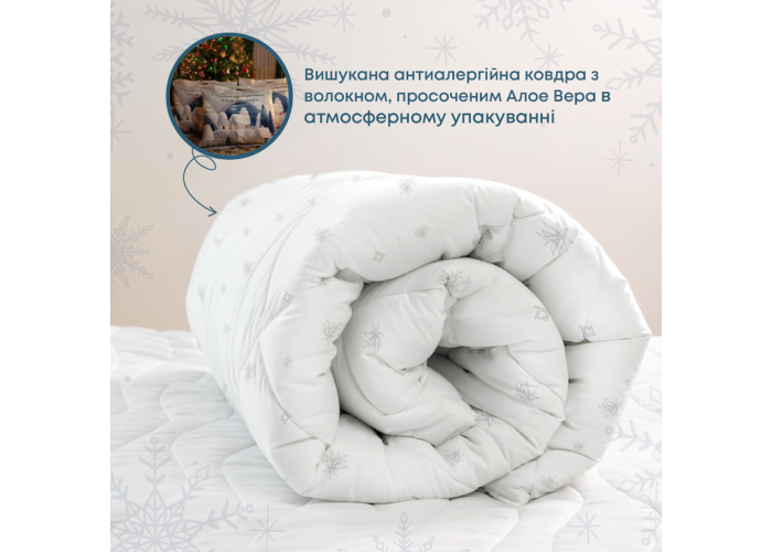 Вишукана ковдра з антиалергенним волокном, просоченим екстрактом Aloe Vera у лімітованому атмосферному святковому упакуванні. Ідеально для подарунку собі чи близьким