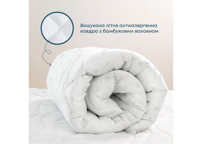 Бамбукове волокно є актуальним наповнювачем і додає ковдрі ефект свіжості та легкої прохолоди влітку. Воно допомагає забезпечити оптимальний рівень вологості і дихання під час сну.