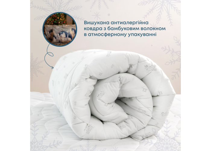 Вишукана антиалергенна ковдра з бамбуковим волокном у лімітованому атмосферному святковому упакуванні. Ідеально для подарунку собі чи близьким.